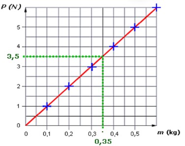 Déterminer graphiquement la masse d’un objet d’un poids \( P = 4N \).