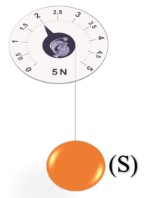 On met en équilibre un corps (S) de masse \( m = 150 \, g \) en le suspendant à un dynamomètre qui indique la valeur \( 2 \, N \).