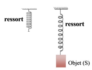 La figure ci-contre représente un objet (S) est en équilibre suspendu à un ressort.
