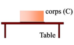 On considère le schéma ci-contre où le corps (C) est en équilibre sur une table.