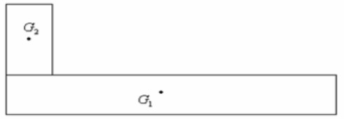 Une plaque homogène formée de deux rectangles de centre \( G_1 \) et \( G_2 \) et de masse \( m_1 \) et \( m_2 \). Déterminer la position du centre d’inertie \( G \) de l’ensemble des deux plaques.