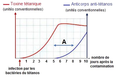 Le graphique ci-contre montre l’évolution de la quantité de toxine tétanique et