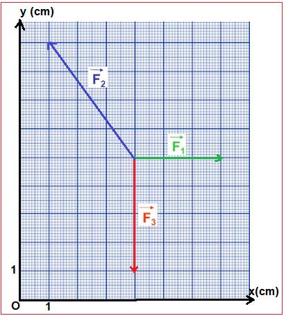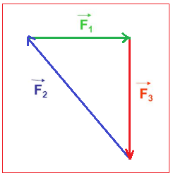 - la somme vectorielle des trois forces est égale au vecteur nul : \( \vec{F}_1 + \vec{F}_2 + \vec{F}_3 = 0 \)