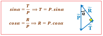 \[\text{sin α } = \frac{T}{P} \implies T = P.\text{sin α }\]