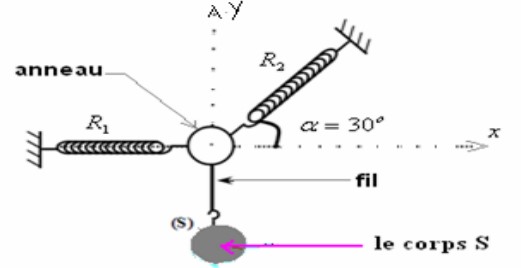 Le système représenté dans la figure (1) est en équilibre, il est composé d’un corps (S) homogène de masse m=600g.