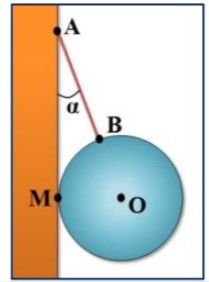 Une sphère homogène de masse \( m = 2 \, kg \) et de centre O est maintenue en équilibre contre un mur vertical lisse par un fil inextensible. Le fil fait un angle \( \theta = 30^\circ \) avec le mur et est attaché en un point B de la surface de la sphère.