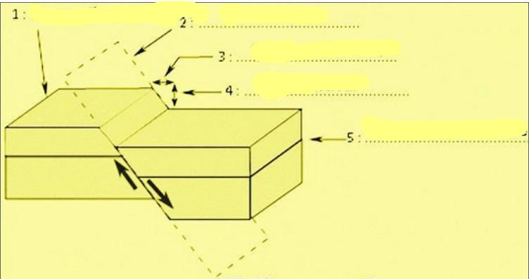 À compléter : compartiment soulevé, compartiment abaissé, plan de faille, rejet vertical,rejet horizontal