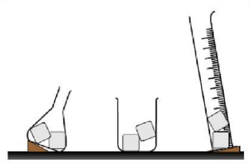 On dépose des morceaux de glace puis une quantité de sable dans quelques récipients de formes différentes :
