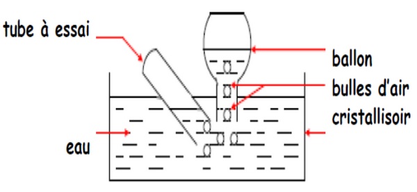 L’air se déplace du tube à essai vers le ballon sous forme de bulles et prend la forme du ballon.