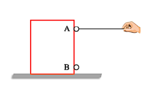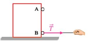 A l’aide d’un fil, on tire une boite dans 2 points différents A et B, et on observe l’effet de la force exercée par le fil sur la boite.