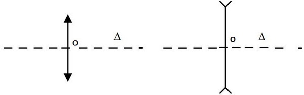 Axe optique : On appelle l’axe optique de la lentille, la droite passant par son centre et perpendiculaire à la lentille, on le note (Δ).