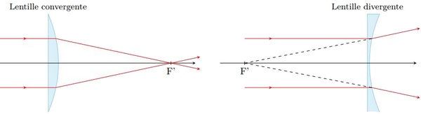 Dans le cas d’une lentille convergente, le foyer image est réel alors qu’il a le statut d’image virtuelle pour une lentille divergente.