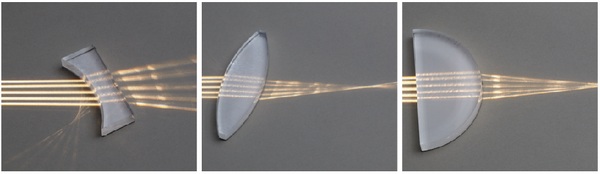 Lentille à bords épais : Après avoir traversé la lentille à bords épais, les rayons lumineux s’écartent (divergent). Cette lentille s’appelle lentille divergente.