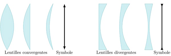- Les lentilles convergentes : plus minces au bord qu’au centre.