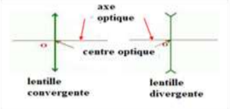 - Axe optique : Droite passant par le centre optique perpendiculaire au plan de la lentille