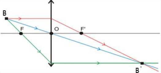 - Construction : Tracer les 2 rayons particuliers pour trouver B’ (image de B)