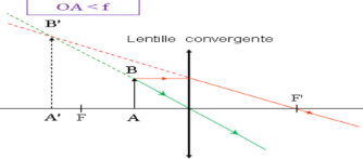 Cas 3 : OA < f (Objet entre le foyer et la lentille)