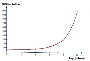 Le comptage progressif du nombre de bactéries dans la culture a permis de tracer le graphique suivant :