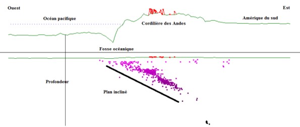 Le document ci-dessous représente la répartition des foyers sismiques sous l’Amérique du Sud
