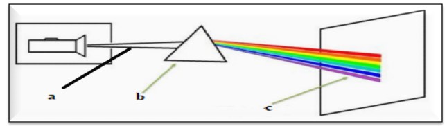 Le spectre continu de la lumière blanche comprend les couleurs : violet, indigo, bleu, vert, jaune, orange, rouge.