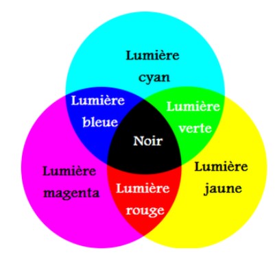 La superposition des trois couleurs secondaires absorbe la lumière blanche et donne la lumière noire. C’est la synthèse soustractive.