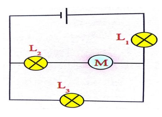 Document : Circuit avec générateur, lampes L1, L2, L3 et moteur M
