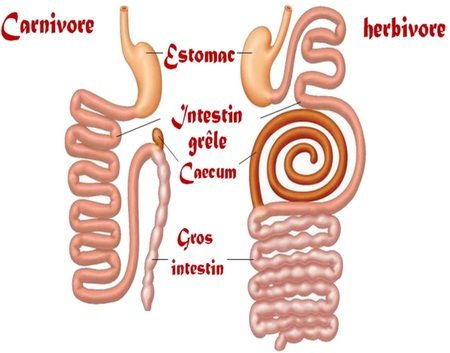 Schéma du tube digestif d’un herbivore et d’un carnivore :