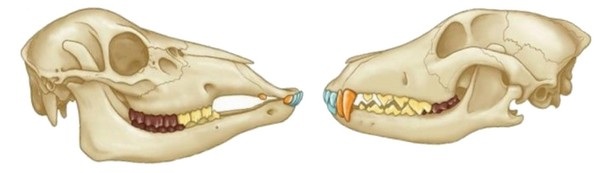 - Mâchoire inférieure : 2 incisives et 10 molaires (4 prémolaires et 6 molaires).