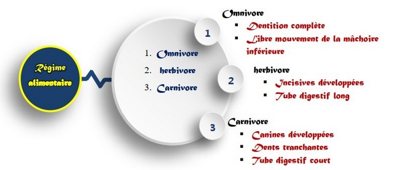 Cette alimentation double caractérise le régime alimentaire omnivore et nécessite la présence d’organes adaptés.