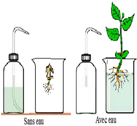 On place des végétaux identiques dans deux récipients, l’un contenant de l’eau, l’autre non: