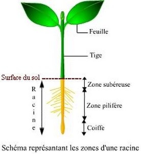 La racine d’une plante est formée de trois zones distinctes: