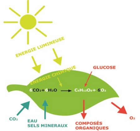 La photosynthèse permet, grâce à la lumière du soleil, de fabriquer cette matière organique au niveau des feuilles.