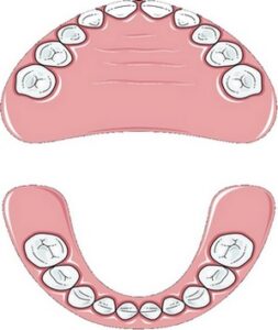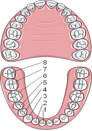 Formule dentaire de l’adulte : \(\frac{2i+1c+2p}{2i+1c+2p} ×2 = 20\)