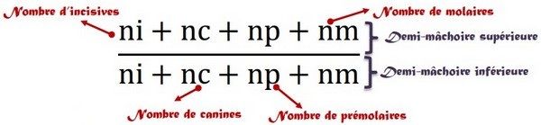 Formule dentaire de l’homme : \(\frac{2i+1c+2p+3m}{2i+1c+2p+3m} ×2= 32\)