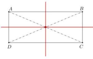 Le centre de symétrie d’un rectangle est le point d’intersection de ses diagonales (son centre).