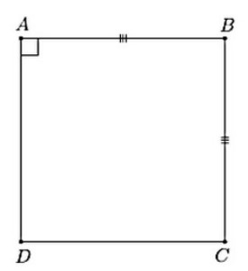 On a : AB = BC = CD = DA et \(\widehat{A} = \widehat{B} = \widehat{C} = \widehat{D} = 90°\).
