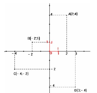 Placer les points suivants : A(2, 4) , B(-2, 1) , C(-4, -2) et D(3, -4)