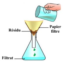 – La filtration permet de séparer certains constituants solides d’un mélange hétérogène. Le liquide obtenu s’appelle l’eau filtrée (filtrat).