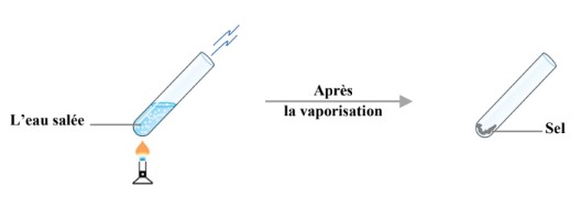 On chauffe de l’eau salée jusqu’à la vaporisation totale de l’eau.