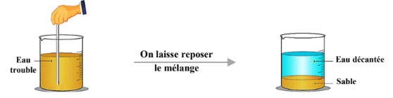 – La décantation consiste seulement à laisser reposer le mélange. Le liquide obtenu s’appelle l’eau décantée.