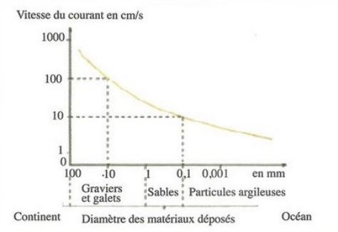 2. Quel est le diamètre maximum des sédiments qui peuvent être entraînés par un courant d’une vitesse de :