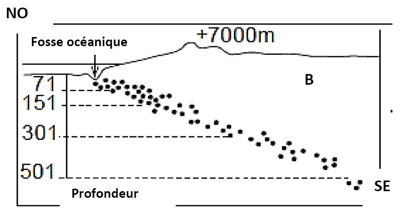……… - Analyser le document (B), puis expliquer comment se répartissent les séismes. (1 pt)