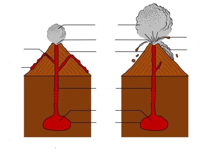 [Schéma des deux types de volcans]