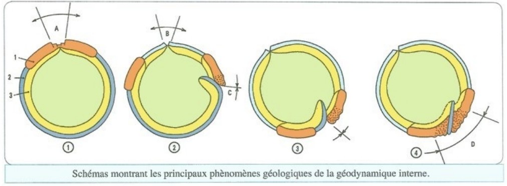 Le schéma suivant représente des phases de la tectonique globale :