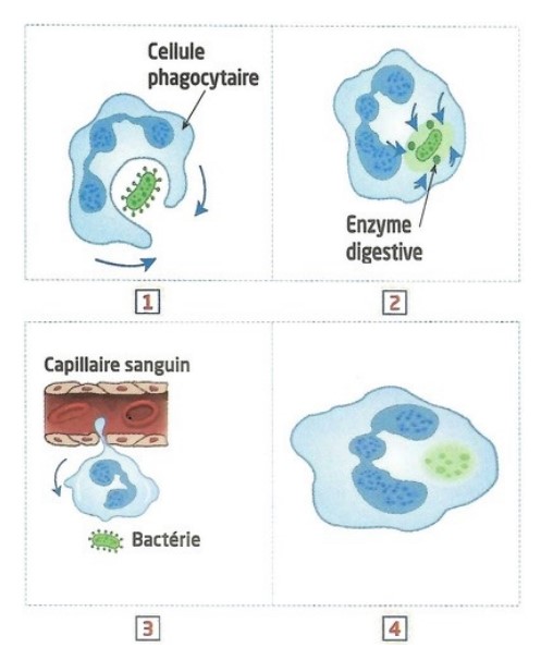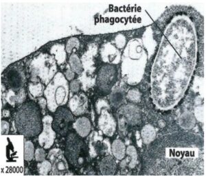 Les photographies suivantes, représentent trois étapes de la phagocytose :