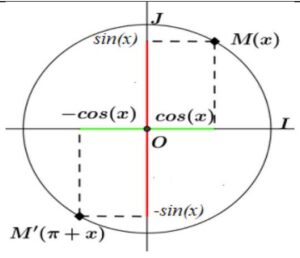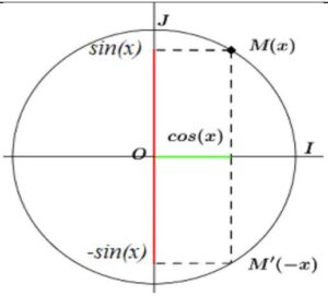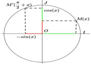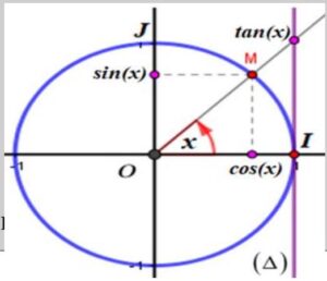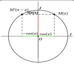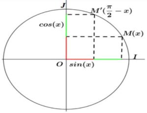 Soit \( C \) un cercle trigonométrique et \( (O, \overrightarrow{OI}, \overrightarrow{OJ}) \) un repère orthonormé direct lié au \( C \) et soit \( M \) un point de \( C \).