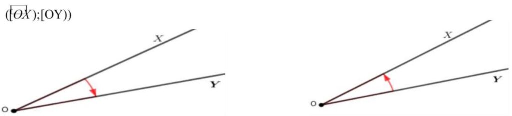 Dans le plan orienté, on considère deux demi-droites \( [OX) \) et \( [OY) \). L’angle déterminé par le couple \( ([OX), [OY)) \) s’appelle l’angle orienté de deux demi-droites et on le note : \( ([OX);[OY)) \).