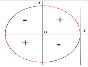 Le triplet \( (O, \overrightarrow{OI}, \overrightarrow{OJ} ) \) s’appelle repère orthonormé direct lié au \( C \).